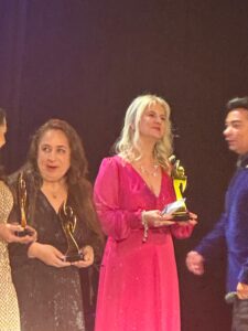 Ela recebeu a premiação na categoria Ouro, em reconhecimento por ter sido a primeira jornalista a integrar a equipe do Brazilian Times, entre 1993 e 2000. Atualmente, a jornalista atua como representante do jornal na região Sul do Brasil.