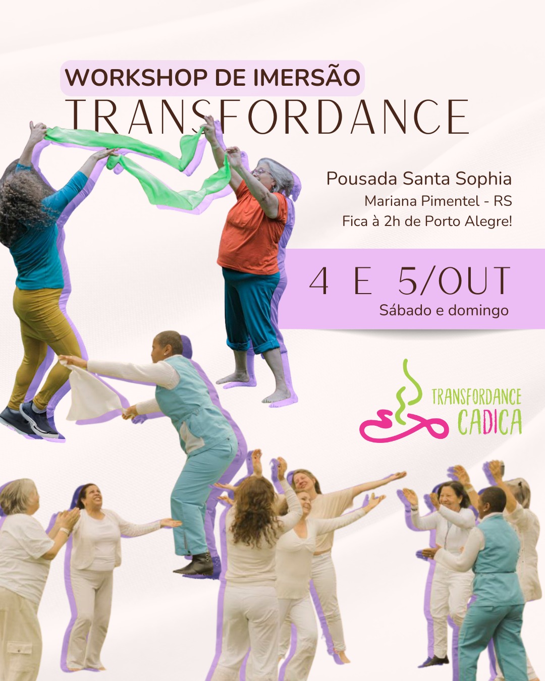 A cidade de Mariana Pimentel será palco de uma experiência inovadora de bem-estar e autoconhecimento nos próximos dias 4 e 5 de outubro. O evento Transfordance de Imersão (dança terapêutica) será realizado na Pousada Santa Sofia, localizada a apenas duas horas de Porto Alegre.