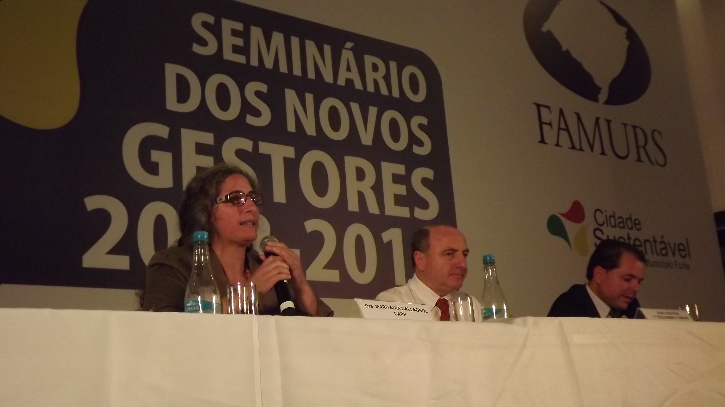 O novo pacto federativo foi o tema principal da abertura do Seminário dos Novos Gestores, promovido pela Famurs no Centro de Convenções do Hotel Plaza São Rafael, em Porto Alegre, no último dia 06/02, quando estiveram reunidos mais de 500 pessoas, entre prefeitos e outras autoridades. Sob a coordenação do 1º Tesoureiro da FAMURS, João Vestena, o tema “Planejamento Estratégico Municipal e Orientações para o Exercício do Mandato” foi proferido pela advogada Maritânia Dallagnol e pelo Coordenador Geral da Famurs, Dr. Julio Dorneles.